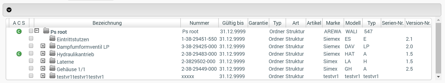 Die Serviceobjekte umfassen in Form einer Baumstruktur sämtliche Produkte die beim Kunden im Einsatz sind. Es können innerhalb der einzelnen Komponenten (Gruppen) jegliche Arten von Information abgelegt werden. Diese wichtigen Informationen dienen wiederum zum Beispiel dem Servicetechniker als Basis für seinen Einsatz.